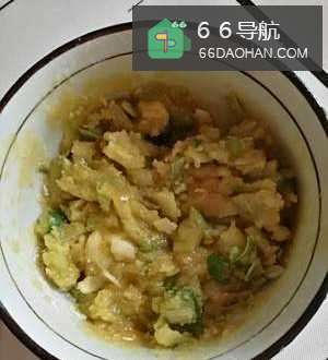 葱切碎,放一部分面粉,倒适量植物油,用勺子拌成油酥。