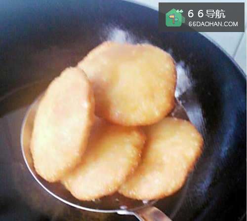 5锅内放油,油温六七成热,油温上来时,放入成型的薄饼。