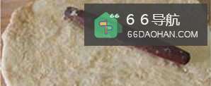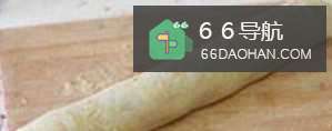 5在案板上撒上炒熟的黄豆面,把糯米面团放在案板上,再在上面撒一层黄豆面,用擀面杖擀成面0.5cm左右厚的长方形面片。