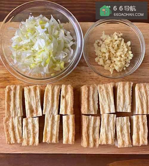 首先将绢豆腐油炸,一块豆腐正常可以切成8等分。