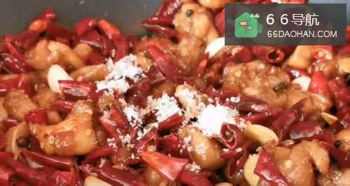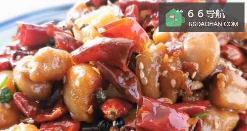 将鸡块炸至外焦内酥,与花椒、干辣椒和指天椒一同拌炒而成,成菜色泽红润,麻辣鲜香,酥香爽脆。