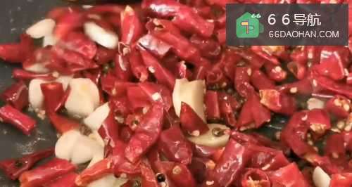 7加葱、蒜、八角和香叶同炒(我家超能吃麻,花椒没有滤出),加入辣椒,翻炒均匀,这时浓烈如餐馆的香味会不断飘出。