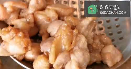 6炸到鸡块金黄干香后捞出,沥干油备用。