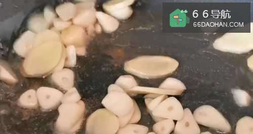 锅中加少许菜油,小火炒香花椒和姜片(有花椒在,此步骤用时很短)。