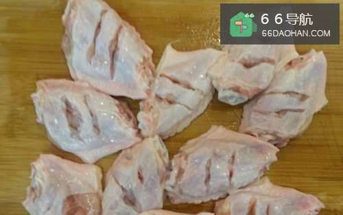 新鲜鸡翅洗净沥干后,用刀在鸡翅背后划二刀,这样腌制时会更入味