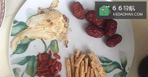 将所有需要放的配料(红枣、当归、枸杞、沙参等)全部准备好,放在一个盘子里备用。