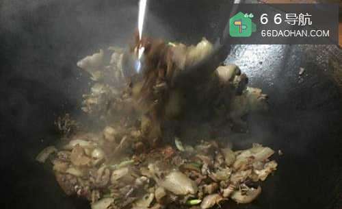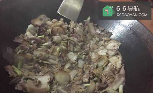 5最后把咸菜放锅里和肉一起炒。