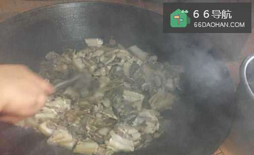 3让后把肉放锅里不停地翻炒,如图。