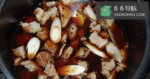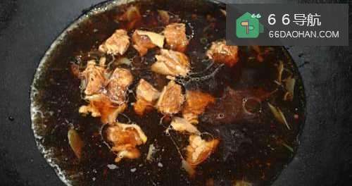 5牛腩炖好后,将汤放入锅中,然后放入一些牛腩,将汤烧开。