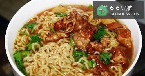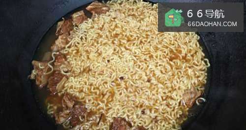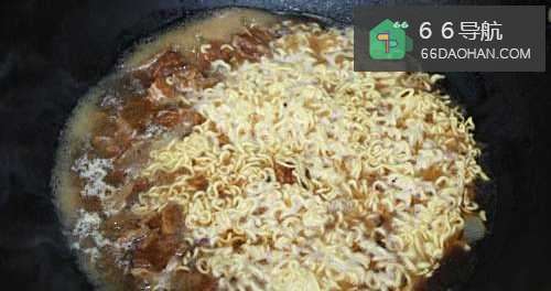 6放入一个方便面的面饼(如果用普通面条,做好的牛腩面的汤会比较浑浊。