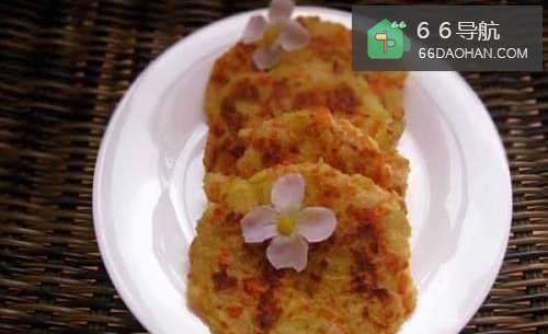 将胡萝卜和去皮的土豆蒸烂,压成泥,加上作料拌匀,做成饼,放在平底锅里油煎即可.