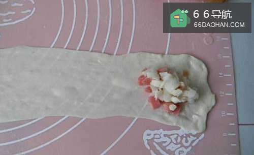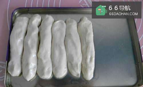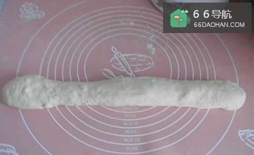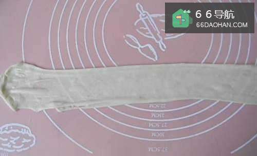 5搓成长条,盘子上刷油,放入面团,面团上再刷一层又。
