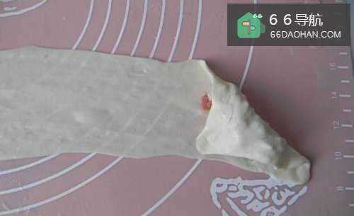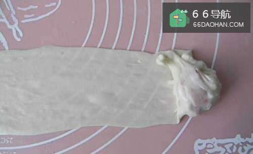 11.一手按住面的一头,另一只手轻轻一拽,就会拉长面条,非常薄。
