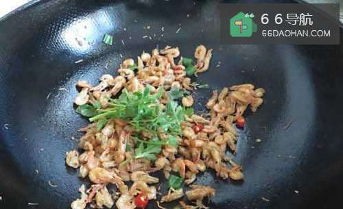 3锅中放油烧热后放入虾炒至变色变酥捞出沥油
