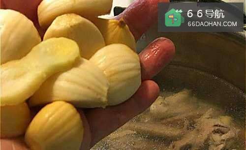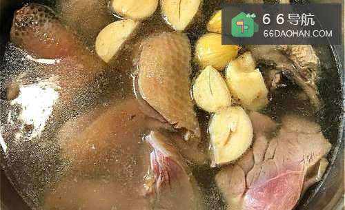 3再将鸡腿切块加入蒜头汤里一起续煮约10分钟。