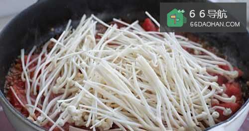 7放入金汁菇翻炒均匀,煮至金针菇变软