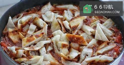 9把切好的烙饼放入锅中,翻拌均匀使之裹上汤汁