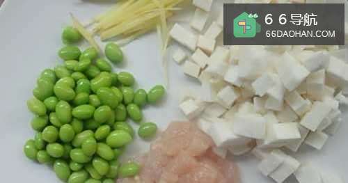 毛豆仁放入滚水中汆烫断生。