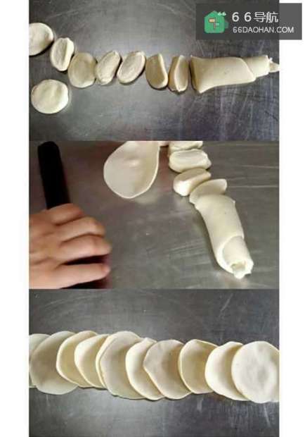 3250g中筋面粉加110g水和成团,搓条下剂,擀面皮。