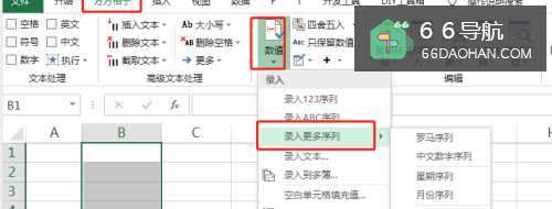 4在【数值录入】功能组,选择【数值】下三角按钮→【录入更多序列】→【子丑寅卯序列】