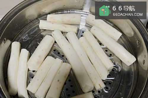 2山药去皮,上锅蒸20到30分钟左右。