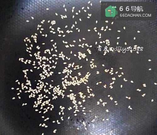 5热锅烧干水份,放入白芝麻炒香,倒出来装在碗里,备用。