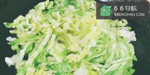 2之后再把卷心菜放入锅焯水后。