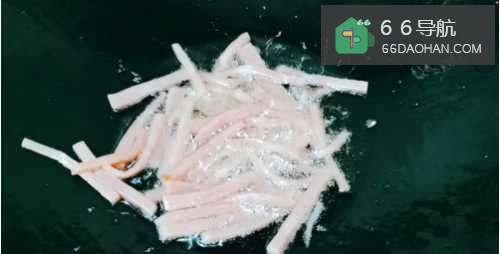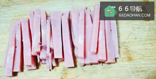 450克火腿肠切成丝。