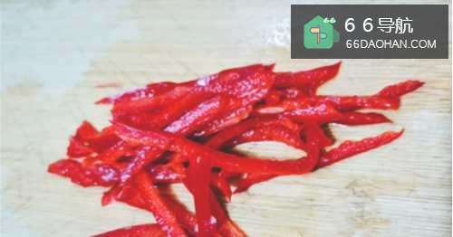 6再把半个红辣椒切成丝。