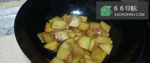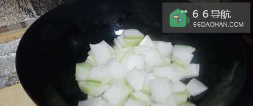 2起锅烧油,放入冬瓜片和少量白糖进去煸炒。