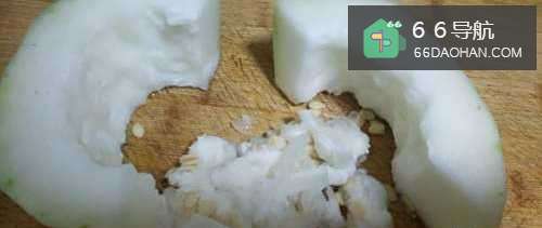 冬瓜去掉外皮和囊,清洗一下切成薄片,切得薄一点,一会儿做的时候容易熟。