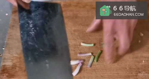 44、鸡肉切丁,放入碗中,撒入姜丝。