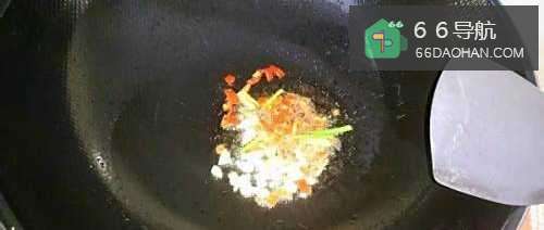 4锅中倒油,倒入葱姜蒜和红辣椒煸出香味后,放入豆豉和炒好的肉末。