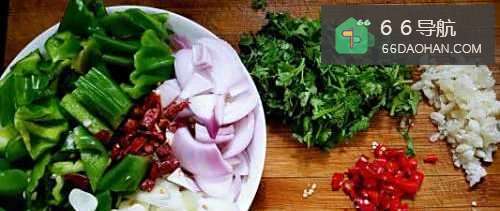 5留底油,将切好的洋葱、辣椒、大蒜放入锅中煸炒。
