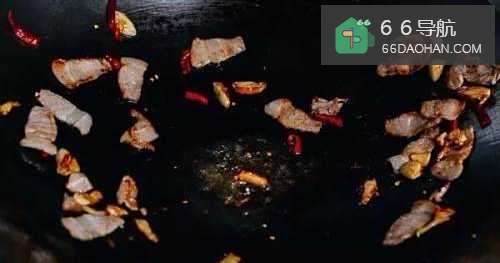 2炒好之后不用盛盘,只把五花肉扒到锅边就可以了