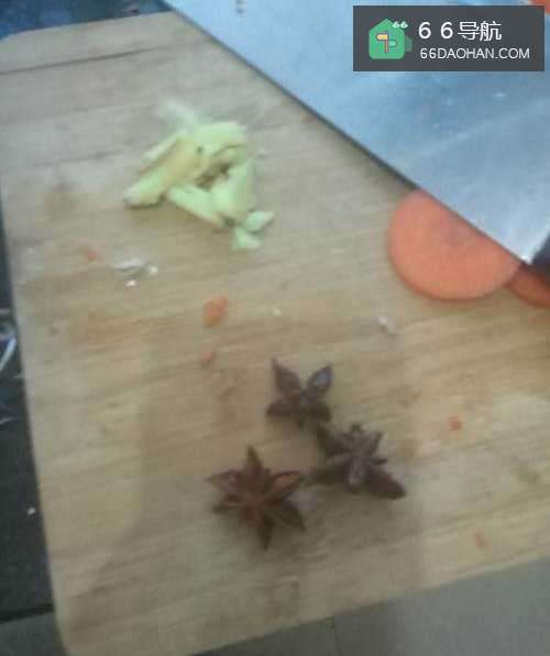 6接着翻炒两分钟,加入适量的水,水漫过排骨即可,同时加入胡萝卜,大火烧开转至小火煎。