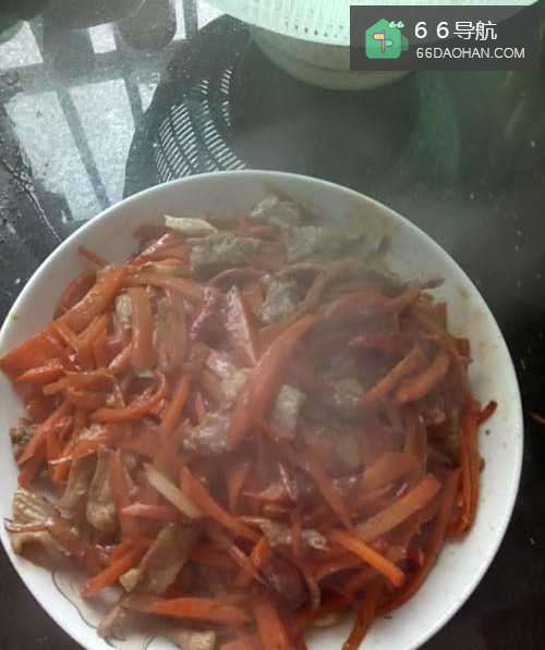 6美味可口的家常胡萝卜炒肉丝就可以出锅了。