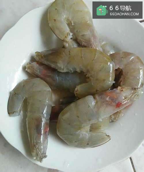 把鲜虾放在清水中,用剪刀剪去虾刺、尾巴和虾线。