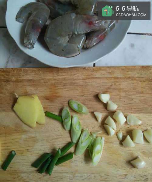 3准备葱、姜、蒜,葱和姜切成片,蒜从中间切开。