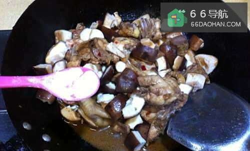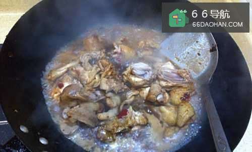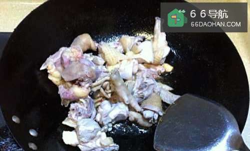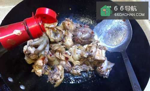 6炒到鸡肉颜色变黄、肉质紧致,加入老抽