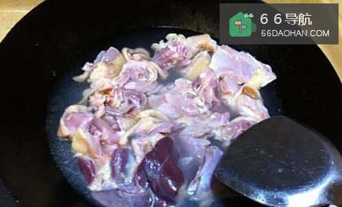2焯水,把血沫煮出来后把水倒掉,盛出鸡肉备用
