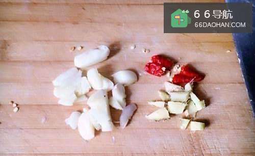 33.蒜子去皮拍碎,生姜片切碎,干红椒切段