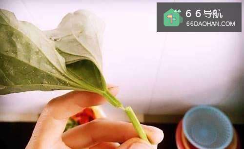 1.鲜的红薯梗子,沿着叶子下端轻轻折断,并撕掉外面的表皮