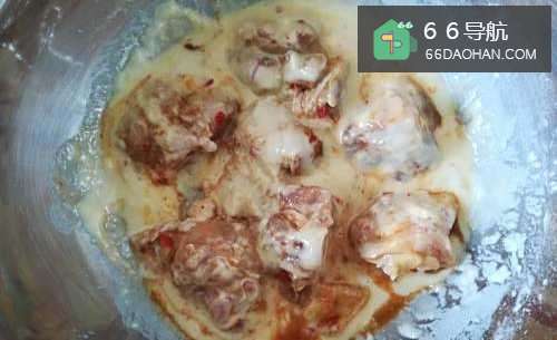 4鸡块先放在面糊里搅拌均匀,再放在面包屑里打个滚,可以下油锅炸啦!