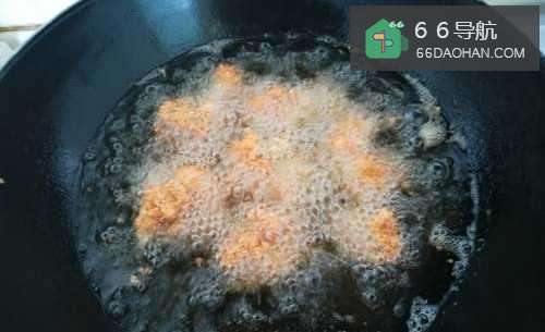 5油锅倒入适量的油,烧到插入竹筷,刷刷起泡,中火开始炸,根据鸡块的大小,先炸4~6分钟,捞出晾凉后,再倒入油锅复炸2分钟。