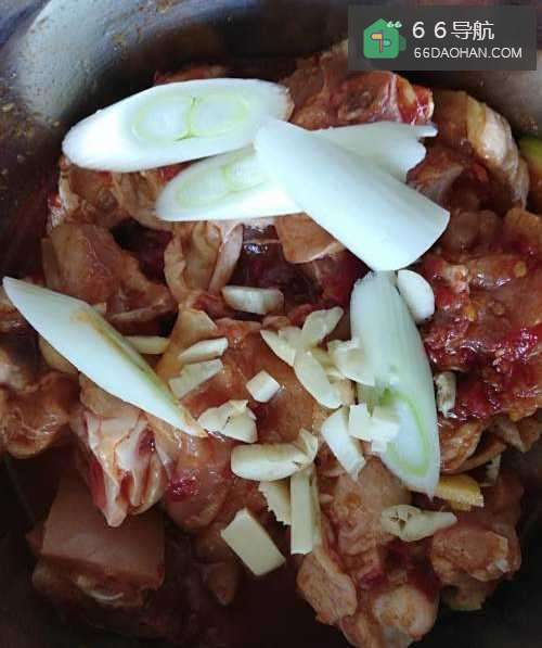 2洗干净的鸡肉放在容器内,放入生抽、香醋、料酒、糖、姜、葱、五香粉,搅拌均匀,腌1个小时。