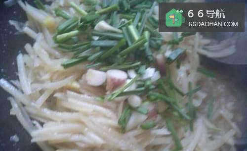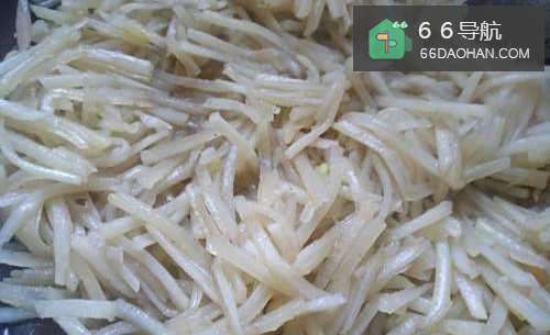 4放入泡好的土豆丝翻炒至土豆由白色变为黄色,变软。