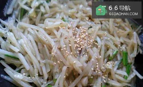 6出锅撒上芝麻,淋上香油,喜欢吃香菜的可以放上香菜段。