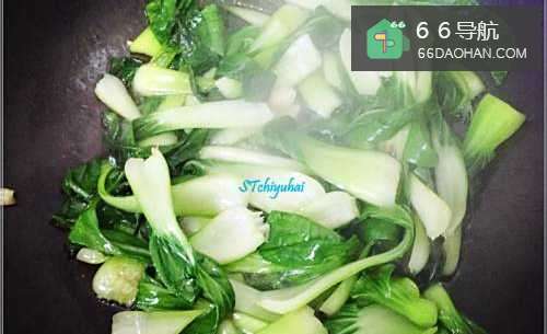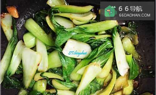 6由于上海青的菜茎比较肥厚,不容易熟透,炒一阵之后如果还没好,加入少许热水,焖一阵,然后试试味道,合适后就可以关火装盘了,一盘翠绿清香的上海青炒豆瓣酱就做好了,这道菜简单但是味道十足。
