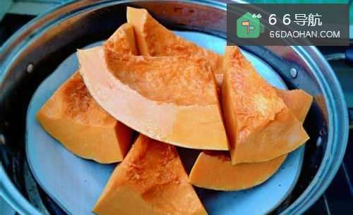 先把老南瓜切块去除瓜瓤后放入上汽的蒸锅中,大火蒸20分钟左右。